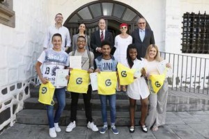 Los alumnos David Santana de la Guardia, María del Carmen Cisse Oyono, Rosa Elena Reyes Peña, Johnny Freddy Cejas Puntero y Dylan Daniel Martín Pérez han recibido los diplomas que acreditan sus becas así como las tarjetas de estudiante de Guaguas Municipales en el transcurso de la presentación a los medios del balance del proyecto, en el que han intervenido la concejal de Cultura, María Isabel García Bolta; el director general de Guaguas Municipales, Miguel Ángel Rodríguez Ramírez; el coordinador general de Cultura, Patrimonio Histórico y Museos del Cabildo de Gran Canaria, Larry Álvarez; el director artístico del Teatro Cuyás, Gonzalo Ubani; y la coordinadora artística del proyecto, Vanessa Medina.